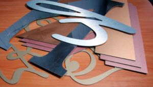 Алюмінієві композитні панелі (АКП) – конструктивний, облицювальний і дизайнерський шаруватий матеріал з 2 листів алюмінію до 0,5 мм, між якими полімер (композиція з поліолефінів). Загальна товщина від 2 до 6 мм. Метал+пластик дають комбінацію властивостей: міцність, легкість, жорсткість, стійкість до УФ-випромінювання й зносу, можливість гнуття. АКП застосовуються для облицювання фасадів, рекламних дороговказів, вивісок і лайт-боксів, торгово-виставкового обладнання, стендів, тощо.
